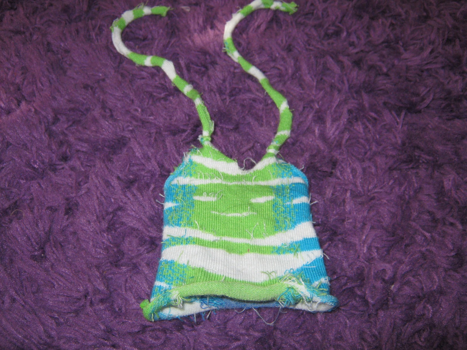 For Christmas my grandma gave me this doll shirt that was handmade by someone, the white capris are an AG store exclusive, and I made the headband from a strip of tulle. I tied it in a knot on my doll's head, and took it off and tied a bow. It accents the outfit and gives the final touch!!!